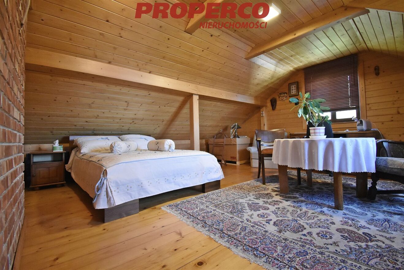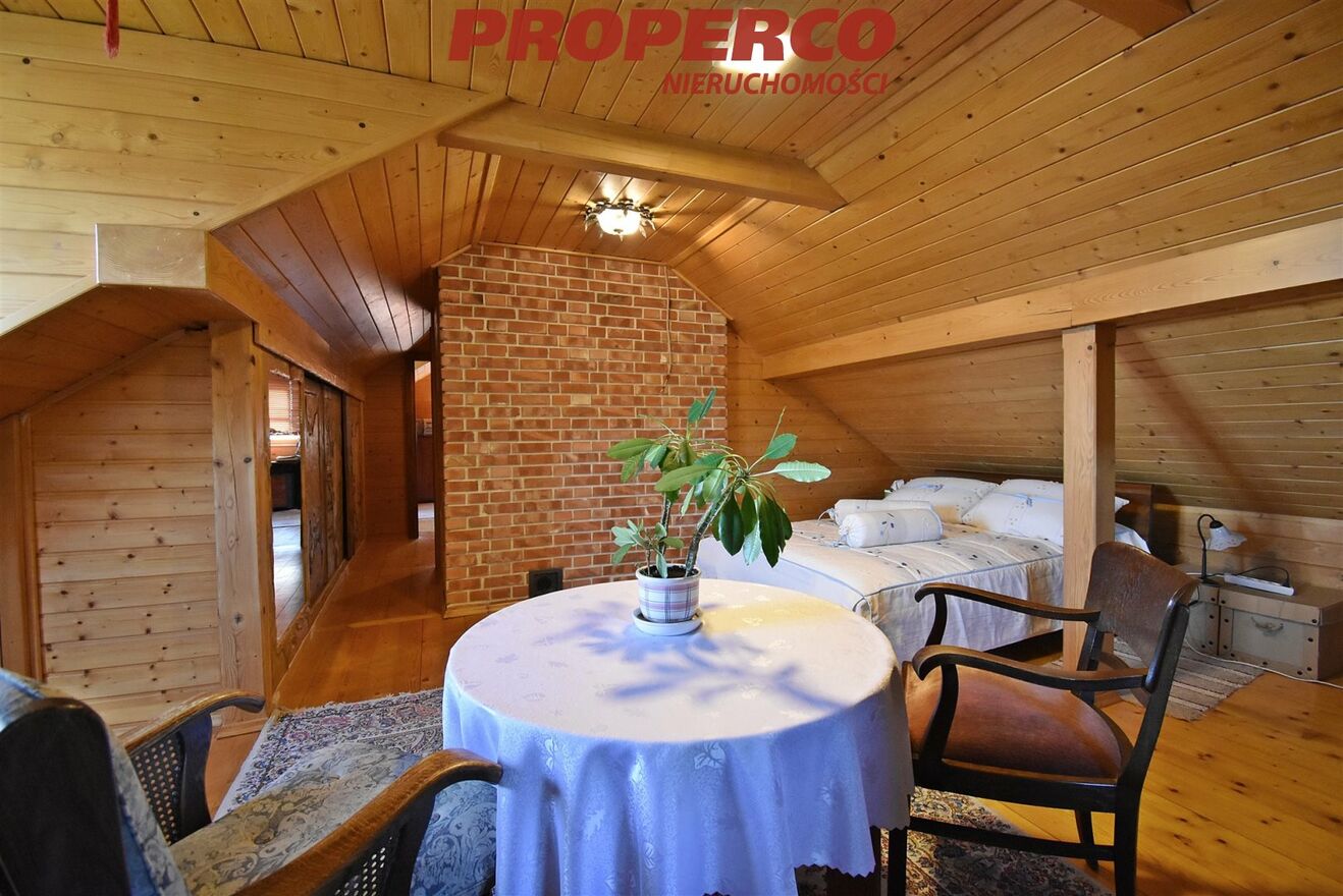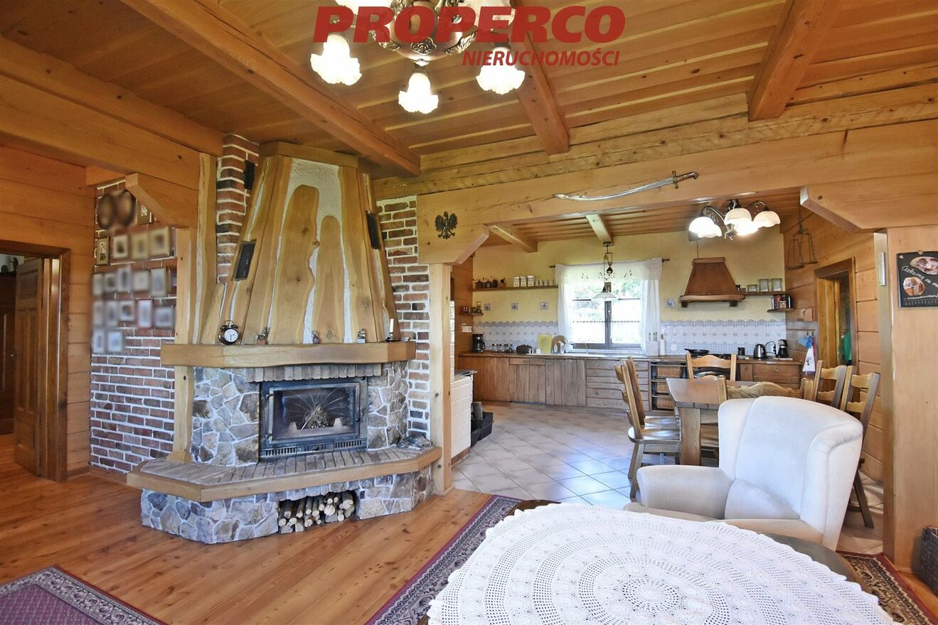 Prezentujemy wyjątkową ofertę sprzedaży przestronnego, wolnostojącego domu jednorodzinnego z bali, o powierzchni użytkowej 175,1 m² i całkowitej 206,6m2, usytuowanego na dużej działce o powierzchni 4245m² , w malowniczej miejscowości Klonów w gminie Łączna. Nieruchomość usytuowana jest na lokalnym wzniesieniu, z przepięknymi widokami na okolicę. Dom o wyjątkowym charakterze, ciepłym klimacie i dobrej energii.Klonów to urokliwa miejscowość w sercu Gór Świętokrzyskich, granicząca ze Świętokrzyskim Parkiem Narodowym, przez którą przechodzi żółty i zielony szlak turystyczny. Do Klonowa kursuje autobus MPK z Kielc.